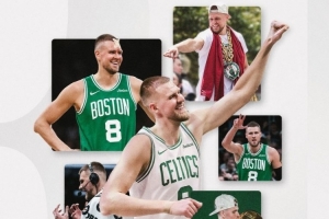 凯尔特人官方晒图致谢波尔津吉斯和霍勒迪道:“永远的凯尔特人冠军🏆☘️, 感谢你们所做的一切。”