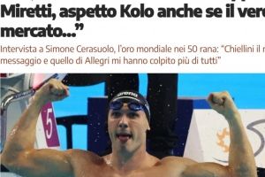 切拉索洛选择了后者,他说道:“对我来说尤文就是一切,我一直以极大的热情关注着尤文图斯的每一场比赛,我是一个狂热的球迷。只要一有空闲时间,我就会拿起手机查找关于尤文图斯的最新消息,尤其是在转会市场如此热闹的时候。我的生活让我从小就开始专注于游泳,很早就停止了踢球,但尤文图斯已经成为我生命中的一部分,永远都是。”