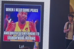 2012年,13岁的里夫斯在社媒发推,配图是科比摊手,配文则是:“当我想安静下来的时候,我会将手机设置为勒布朗模式,不响铃。哈哈。”(不响铃,No Ring,没戒指。当时詹姆斯距离获得自己的第一个总冠军还有2个月的时间)。