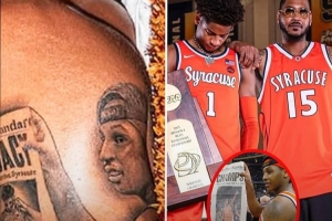 2003年,卡梅隆-安东尼率领雪城大学夺得NCAA总冠军,基扬将安东尼夺冠后的经典海报中的“CHAMPS(冠军)”字样改成了“LEGACY(传承)”,并纹在了自己的左臂。