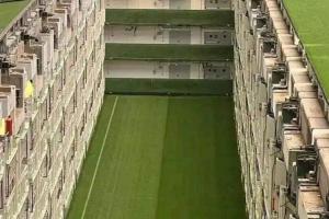 在球场下方有一个深达30米的地下空间,草皮通过可伸缩升降系统进行存放和更换。