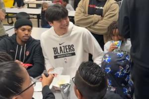 开拓者今日全队参与社区活动,小吧也来到了现场,发现杨瀚森真的很招小球迷们的喜爱。很多小孩子围着杨瀚森转,小杨笑得也很开心。