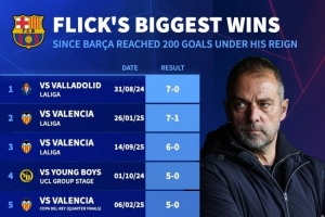 弗里克执教巴萨最大胜利:7-0巴拉多利德居首,5-2、4-0皇马在列