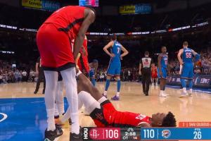 GIF-阿门防守后抽筋了队友