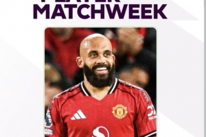 体育资讯10月28日讯 英超官方宣布,曼联前锋姆伯莫当选本轮英超最佳球员。