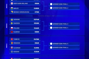 世预赛欧洲区附加赛球队身价排名:
