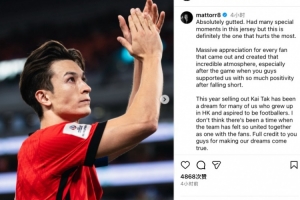 毫无疑问,现在非常失落。为中国香港队出战经历了一些特别的时刻,但此刻最让人神伤。